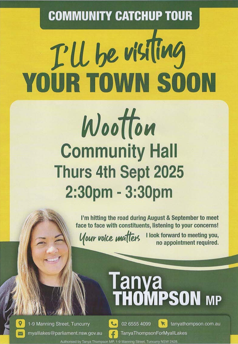 SUNDOWNER DRINKS Last Sunday of the month from 5:00 pm onwards. Join fellow Woottonites for impromtu drinks at the Community Centre / Brush Turkey Cafe. Bring friends, meet your neighbours, […]